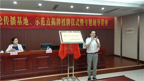 9月19日下午,我县举行党的创新理论传播基地、示范点揭牌授牌仪式暨专题辅导讲座,市委宣传部副部长黄正平出席并讲话。